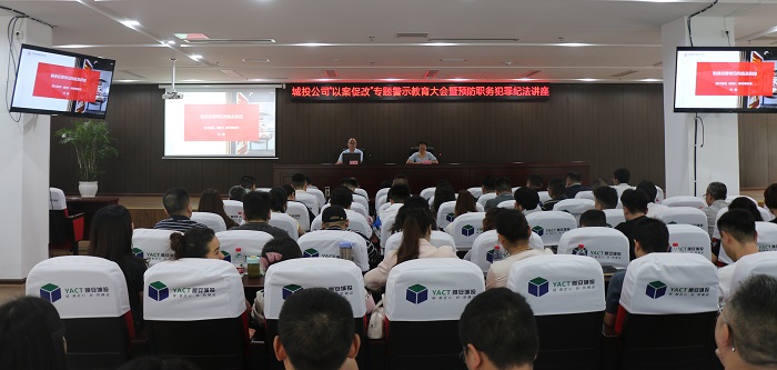 為深入推進(jìn)公司黨風(fēng)廉政建設(shè)和反腐敗工作,切實增強(qiáng)全體干部職工的法律意識與廉潔風(fēng)險防控能力,筑牢拒腐防變的思想防線,9月11日,城投公司組織召開“以案促改”專題警示教育大會,邀請四川發(fā)現(xiàn)(雅安)律師事務(wù)所專職律師代陽作預(yù)防職務(wù)犯罪專題紀(jì)法講座。公司黨委委員、紀(jì)委書記陳柯潔主持會議并講話,在家黨委班子成員出席會議。