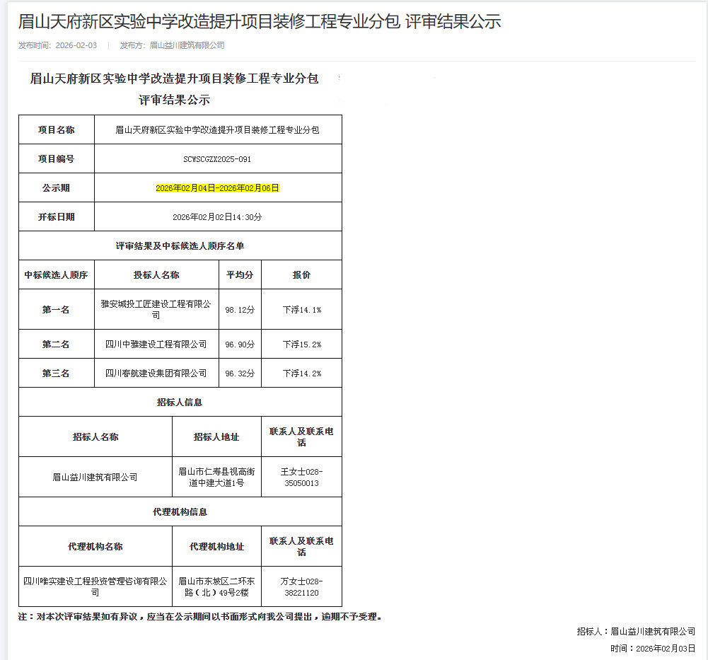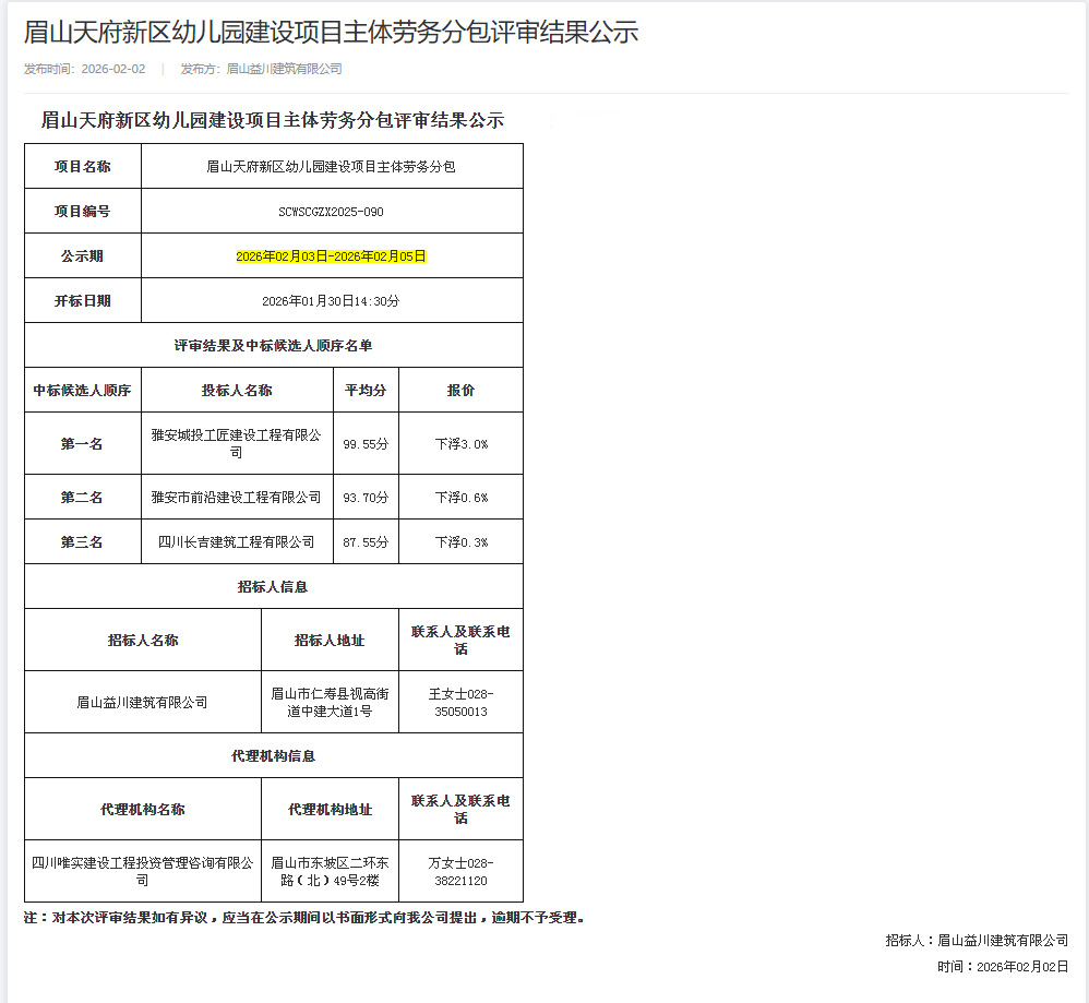 近日,城投工匠公司成功中標“眉山天府新區(qū)幼兒園建設項目主體勞務分包工程”和“眉山天府新區(qū)實驗中學改造提升項目裝修工程專業(yè)分包工程”,中標金額2294萬元。此次中標不僅是公司新年實現(xiàn)的首個重要業(yè)務突破,也是公司首次承接市外項目,標志著跨區(qū)域經營實現(xiàn)“零的突破”,為公司發(fā)展迎來“開門紅”。