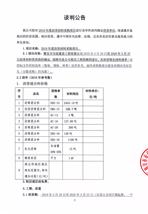 市政公司2019年度瀝青材料采購項(xiàng)目競(jìng)爭性談判公告