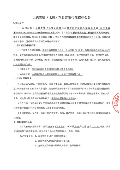 大興壹號(hào)(北苑)項(xiàng)目營(yíng)銷(xiāo)代理招標(biāo)公告