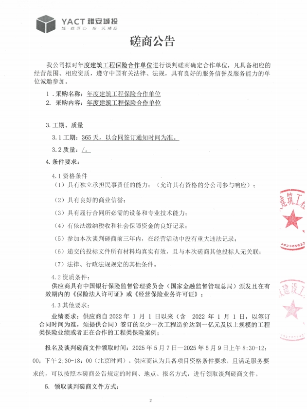 年度建筑工程保險合作單位磋商公告